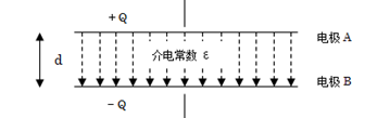 虽然该电场是因来自电源的电荷而产生的,但是如果通过电力线来描述该电场,根据高斯定理,Q/ε[根]的电力线从+Q[C]的电荷处出发,那么在图1中,Q/ε[根]的电力线从电极A出发,然后到达电极B。