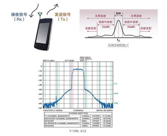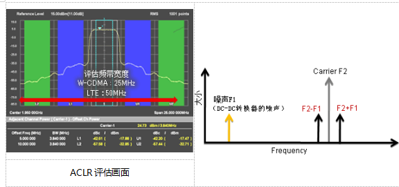 有线连接的射频信号完整性评估项目当中,有ACRL (邻信道泄漏比) 和SEM (频谱辐射屏蔽) 。这些都是评估射频信号附近的杂散发射 (无用发射) 的试验。