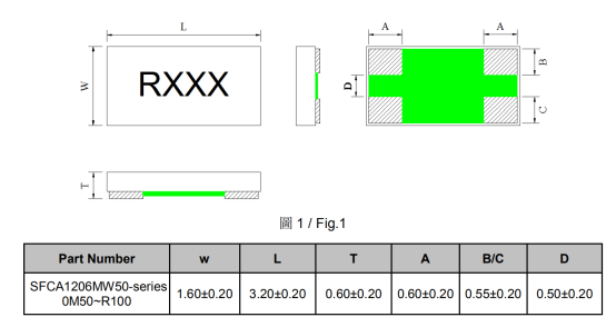 采用1206封装的常用电流检测电阻的电阻值最低可达0.5 mΩ,其最大功耗可能达0.5W.为了展现最差条件下的误差,这些试验采用一个0.5 mΩ、0.5 W电阻,其容差为1%(型号:SFCA1206MW50M50F制造商:WALTER/苏州华德电子)其尺寸和标准4线封装如图2所示。
