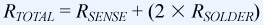 对于开尔文检测,必须将标准双线封装焊盘进行拆分,以便为系统电流和检测电流提供独立的路径。如果使用一种简单的双焊盘布局,则总电阻为: