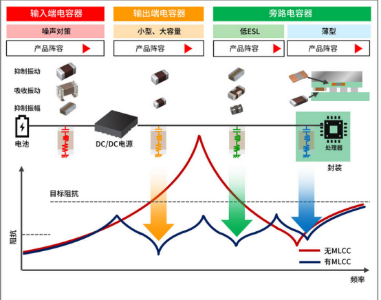 在电源电路中应用ESR和ESL低于电解电容器的多层陶瓷电容器,可以实现高可靠性和小型化。