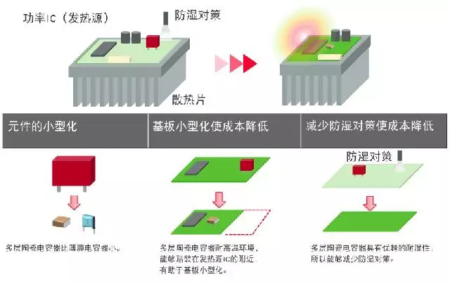接下来,我们用具体的例子来说明薄膜电容器和片式陶瓷电容器的区别,以及小型化和节约成本的特点。
