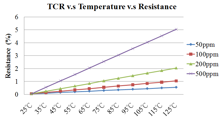 合金电阻的T.C.R(电阻温度系数)与阻值之间关系