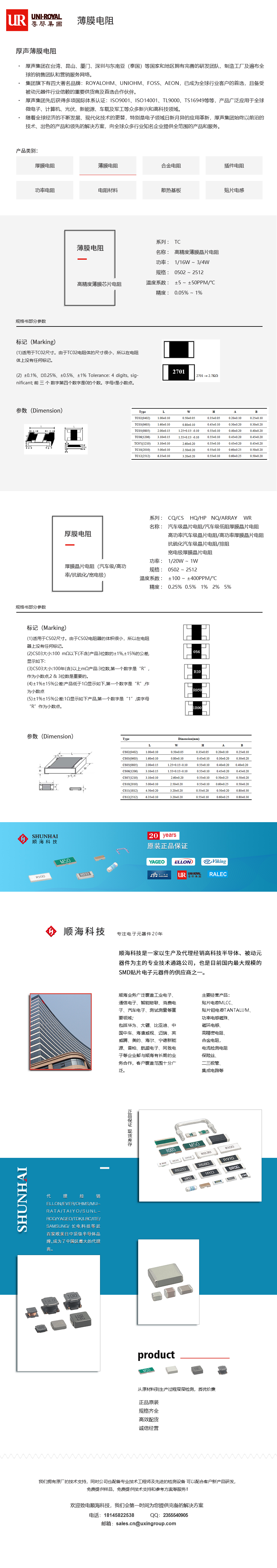 厚声集团主要是一家集研发与生产为一体的电阻生产商,主要有厚膜贴片电阻,薄膜贴片电阻,低阻值贴片电阻,升功率贴片电阻,抗浪涌电阻,高压电阻,水泥电阻,炭膜电阻,晶圆电阻等等。