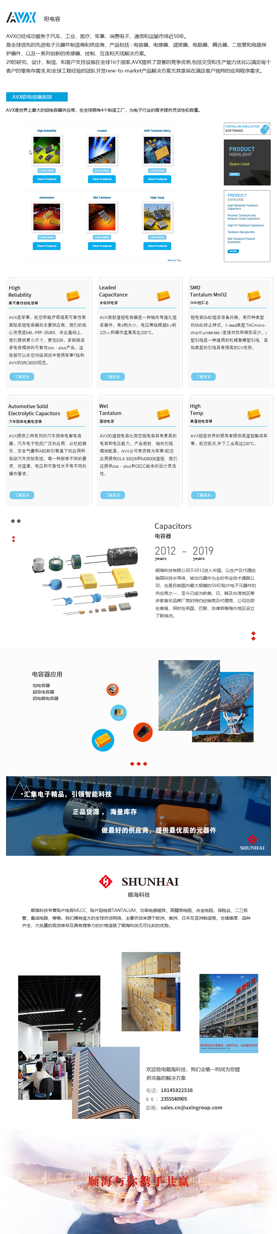 AVX已经成功服务于汽车,工业,医疗,军工,消费类电子,通信和运输市场近50年,是全球领先的先进电子元器件制造商和供应商,产品报过:电容器,电感器,滤波器,电阻器,耦合器,二极管和电流保护器件,以及一系列创新的传感器、控制、互联和天线解决方案商。